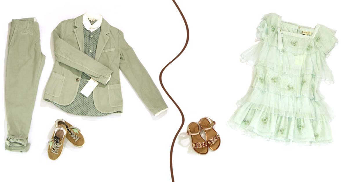 Tra i colori moda per la primavera estate 2016 c’è il verde. Brillante o nelle più tenui tinte pastello, il verde colora il guardaroba per la bella stagione. Anche quello dei più piccoli. Tra le proposte di Evolution Outlet Junior un total look by Gucci per i maschietti, con completo composto di blazer e pantalone (prezzo outlet € 269,00), abbinati ad una camicia a fantasia (prezzo outlet € 155,00) .