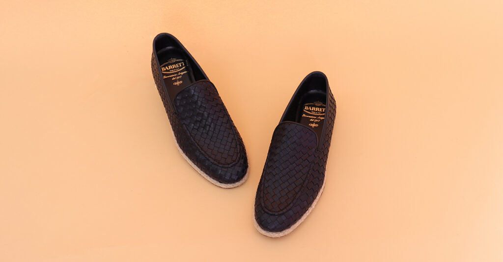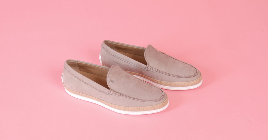 Barrett ha disegnato questi slip on in pelle intrecciata con fondo in corda, realizzati esclusivamente a mano che ricordano le estive espadrillas. Anche Tod’s opta per materiali naturali come la rafia e la corda per i suoi slip on color cammello perfetti per completi dai toni caldi.